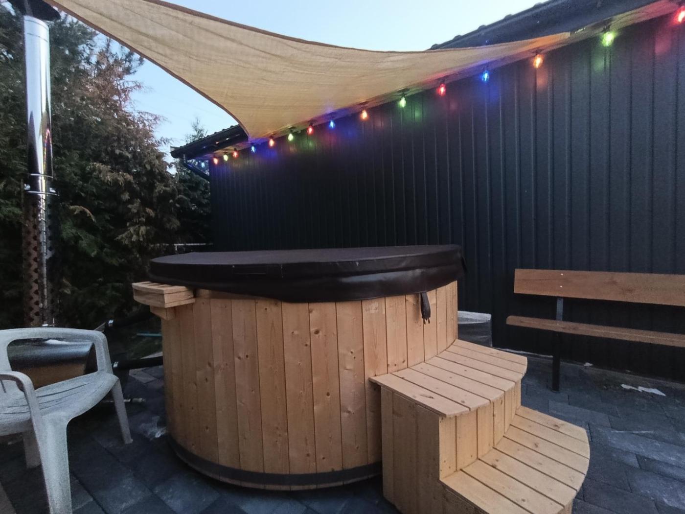 Zaplecze odnowy biologicznej obiektu DOMKI HELENA Okuninka obejmuje saunę i wannę z hydromasażem.