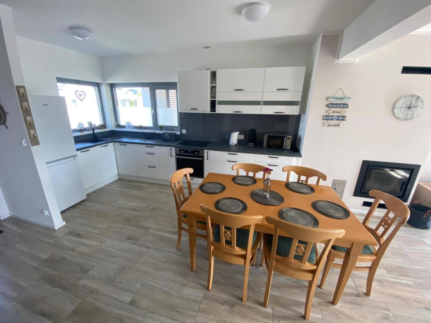 Dom z 3 sypialniami. Guests will have a special experience as the holiday home offers a fireplace. Featuring a private entrance, this holiday home consists of 1 living room, 3 separate bedrooms and 2 bathrooms with a walk-in shower and a hairdryer. Guests will find a stovetop, a refrigerator, a dishwasher and kitchenware in the fully equipped kitchen. The holiday home also offers a barbecue. Boasting a terrace with garden views, this holiday home also provides a washing machine and a flat-screen TV. The unit offers 4 beds. Dom wakacyjny - 8 osobowy. Powierzchnia pokoju ok.: 80 mkw.